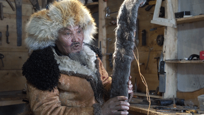斯兰别克·沙合什家住新疆阿勒泰市拉斯特乡,他从爷爷那里学会了制作毛皮滑雪板这项传统的技艺。
