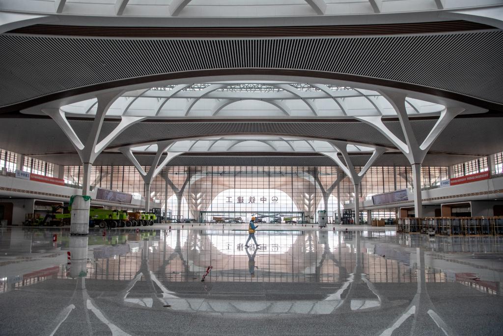 目前,站房主体及装饰装修工程已完成95%以上,屋面、外立面幕墙、室内外树型柱等关键节点均已完工。此外,综合交通换乘中心、地铁隧道及市政桥梁等配套工程同步推进,部分已完工。