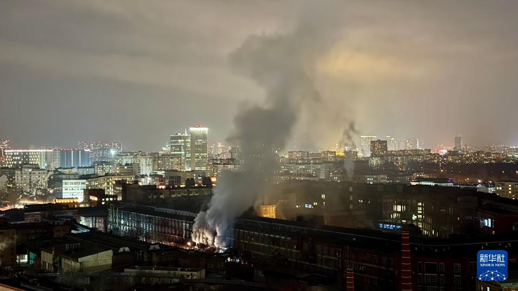 2月8日,在俄罗斯首都莫斯科,火灾现场升起浓烟。新华社发(亚历山大摄)