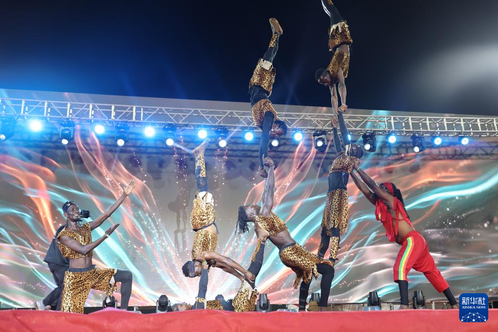 2月9日,加纳杂技演员在首都阿克拉举行的元宵节庆祝活动上表演。新华社发(赛特摄)