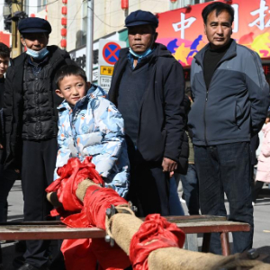 新华社兰州2月12日电(记者范培珅、程楠)农历正月元宵节前夕,63岁的临潭老人马宝瑞换上干净衣裳,特地走上街头,来看大伙儿布置拔河用的钢绳。