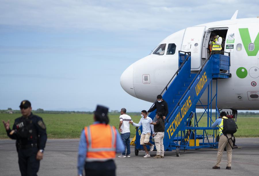 2025年2月13日,在洪都拉斯拉利马市,被遣返移民抵达机场。新华社发(戴维摄)