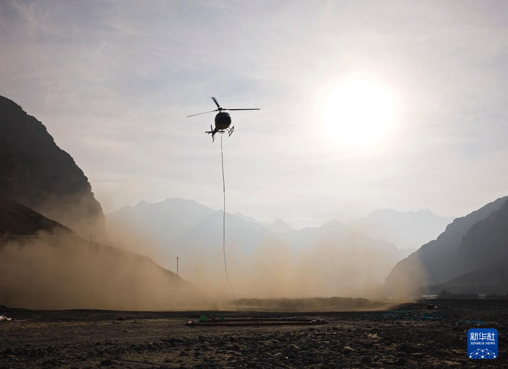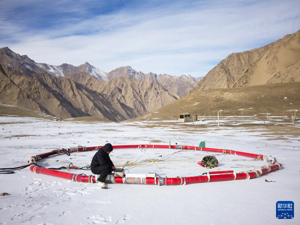 2025年1月11日,科研人员在新疆和田地区测试航空大地电磁探测系统。新华社发(郭丰 摄)