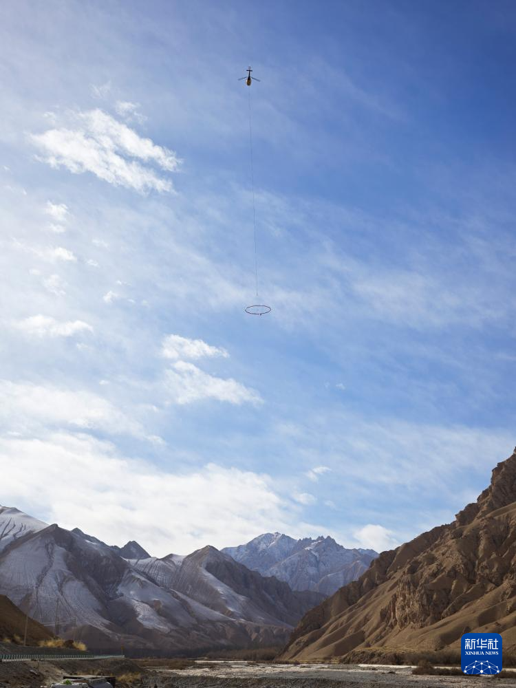 2024年12月21日,航空大地电磁探测系统在新疆和田地区进行飞行探测作业。新华社发(郭丰 摄)