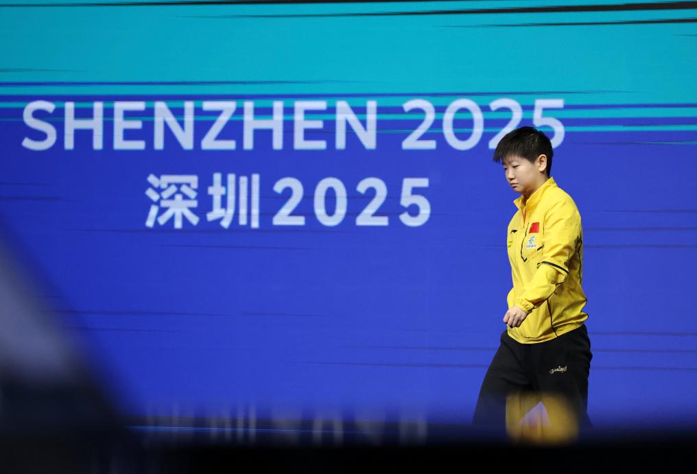 2月22日,孙颖莎在比赛前出场。新华社记者 梁旭 摄