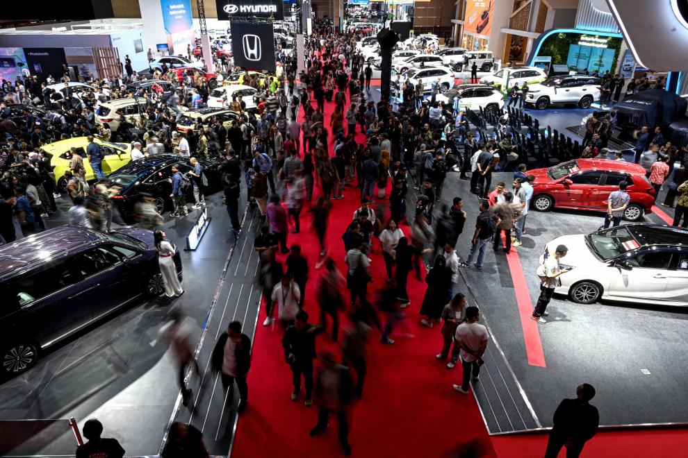 2月13日,人们在雅加达参观印尼国际车展。新华社发,阿贡摄