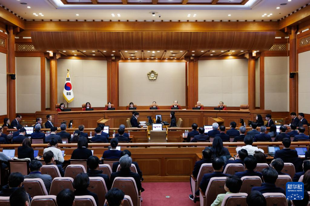 这是2月25日在韩国首尔宪法法院拍摄的最后一场辩论庭审现场。新华社发(Pool图片,曹城凖摄)