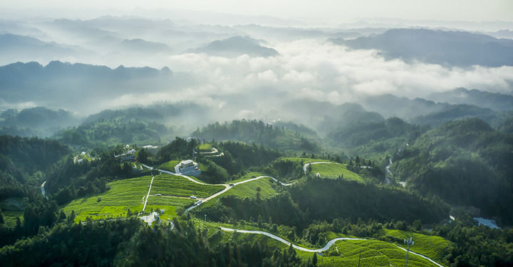 沿着盘山公路向上,山间云雾缭绕,下起了蒙蒙细雨。目光所及,山坡叠着山坡,藤茶叠着藤茶,枝叶丛生。