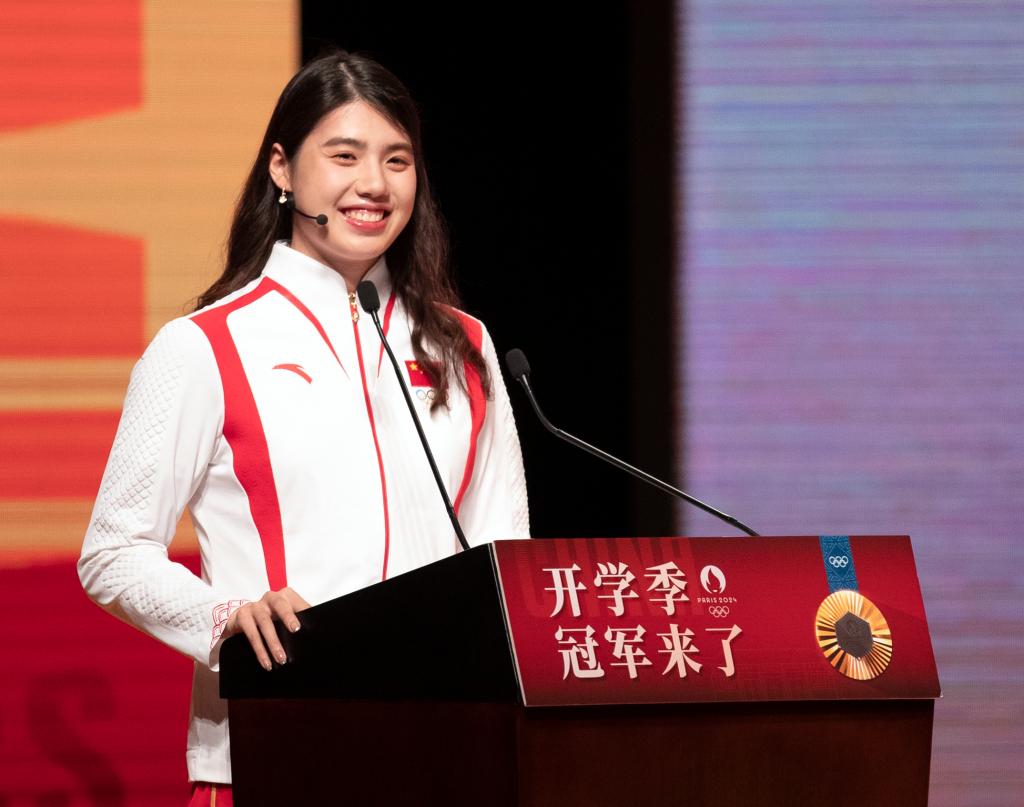 2024年9月19日,张雨霏在“冠军讲堂”发言。新华社记者 雒圆 摄