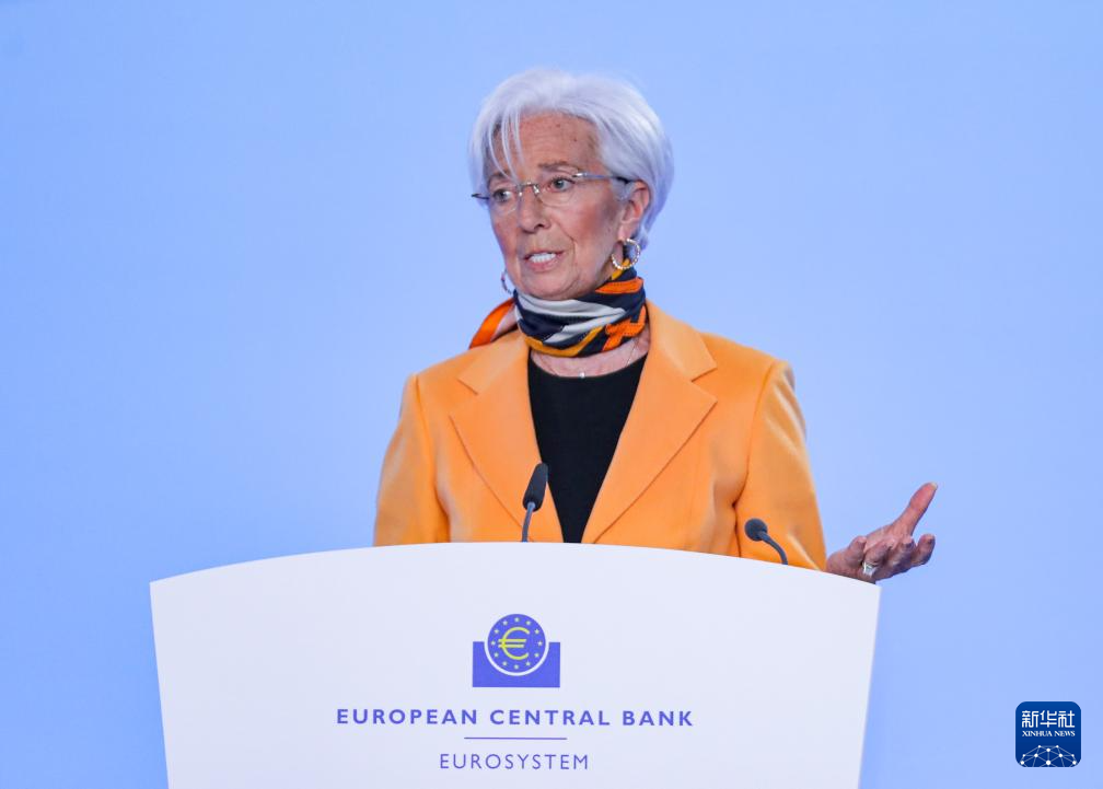 3月6日,欧洲中央银行行长拉加德在德国法兰克福欧洲央行总部举行的新闻发布会上讲话。新华社记者 张帆 摄