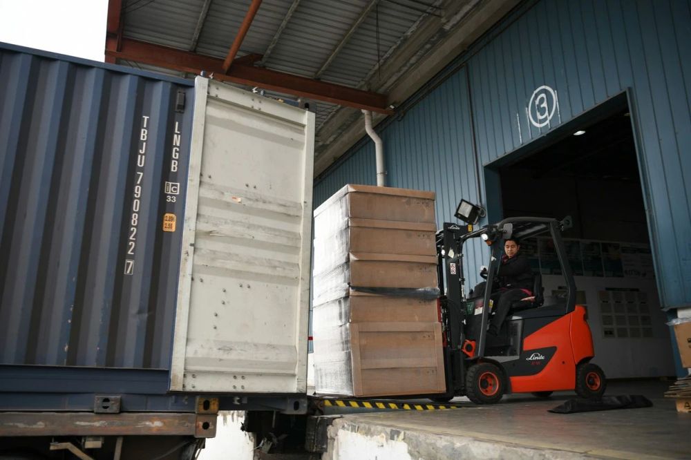 2月19日,在成都高新综合保税区,工作人员在装卸货品。新华每日电讯记者胥冰洁 摄