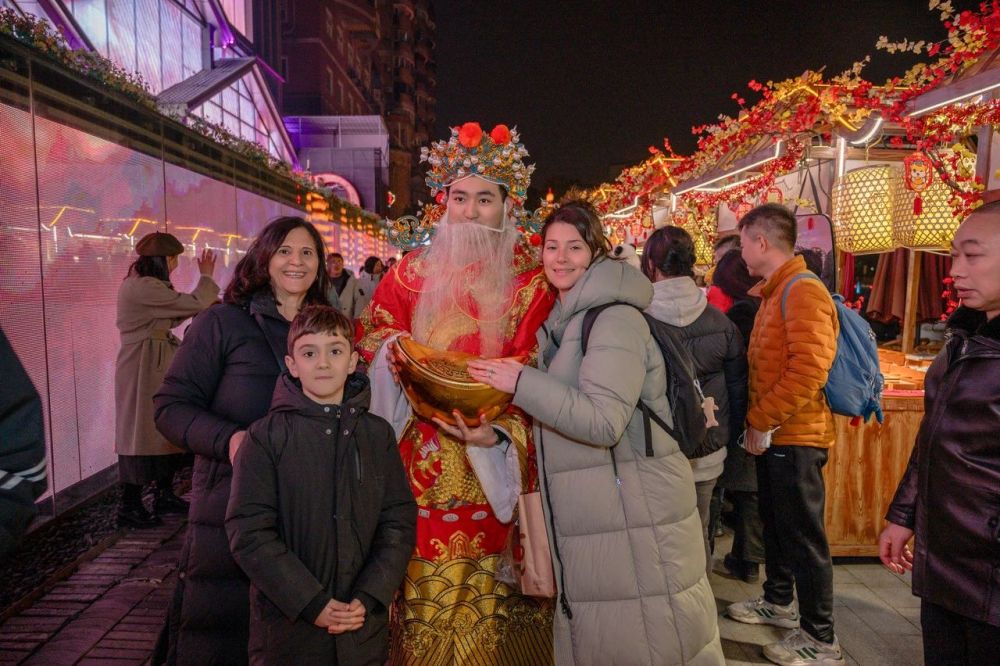 今年春节期间,外国游客夜游成都。成都市锦江区供图