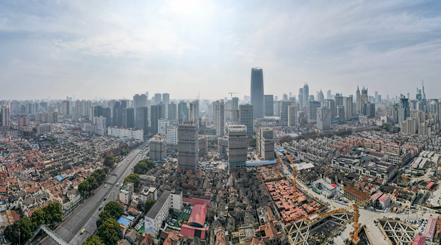 近年来,上海市大力实施城市更新、老旧小区改造,让“老房子”变成更宜居的“好房子”。2025年2月,上海市提出全面完成中心城区零星二级旧里以下房屋改造,完成不成套旧住房改造31万平方米,启动城中村改造项目25个。图为上海市黄浦区508-514街坊地块上海壹号院项目施工现场。新华社记者 方喆 摄