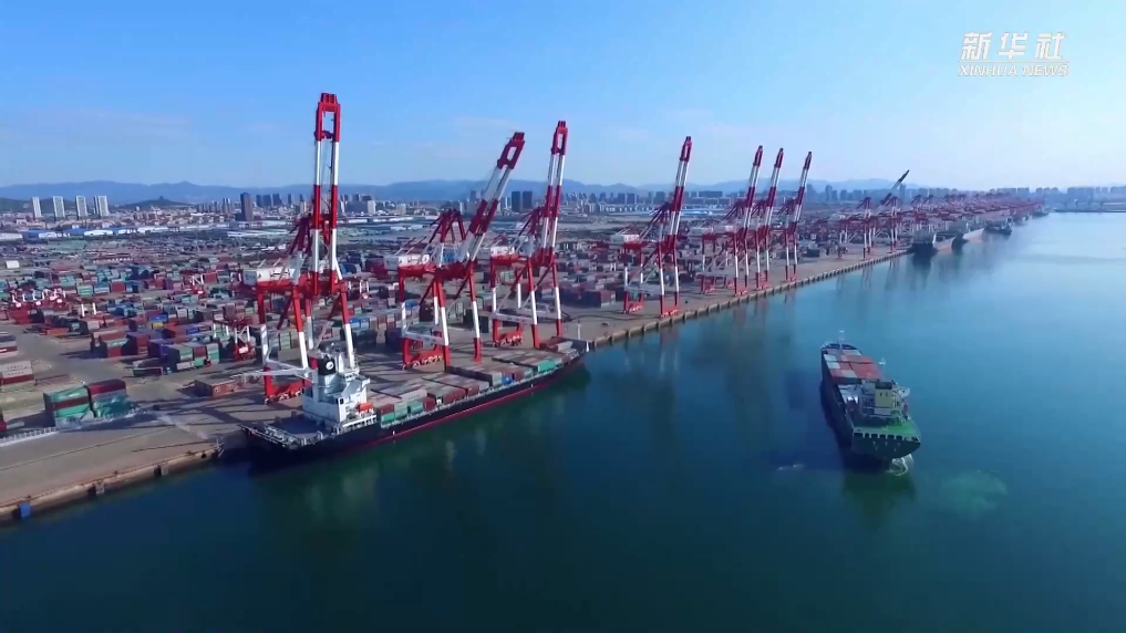 辽宁港口集团大连港是我国东北地区最主要的外贸集装箱枢纽港,记者在这里的集装箱码头看到,集装箱运输卡车排成一字长队,高耸的岸桥精准地将一个个集装箱吊起,摆放在“地中海艾罗安”轮上。