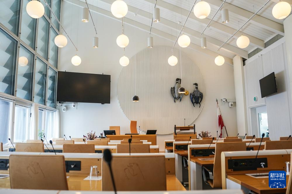 这是3月19日在丹麦自治领地格陵兰岛首府努克拍摄的格陵兰岛自治议会会议厅。新华社记者 彭子洋 摄