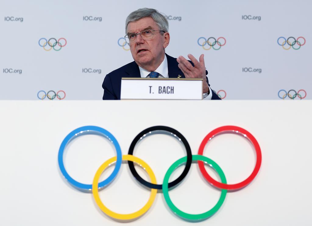 3月21日,国际奥委会主席巴赫在发布会上。新华社记者 曹灿 摄