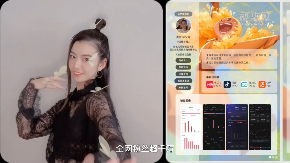 动漫与国风完美衔接,形成流畅的视频变装,文物在她的笔下穿过现实和虚拟的边界,重新绽放,闪亮又鲜活。