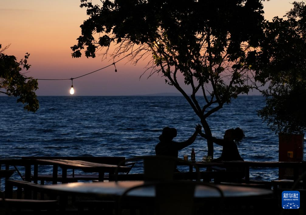 这是2月18日在肯尼亚基苏木拍摄的维多利亚湖黄昏景色。新华社记者 李亚辉 摄