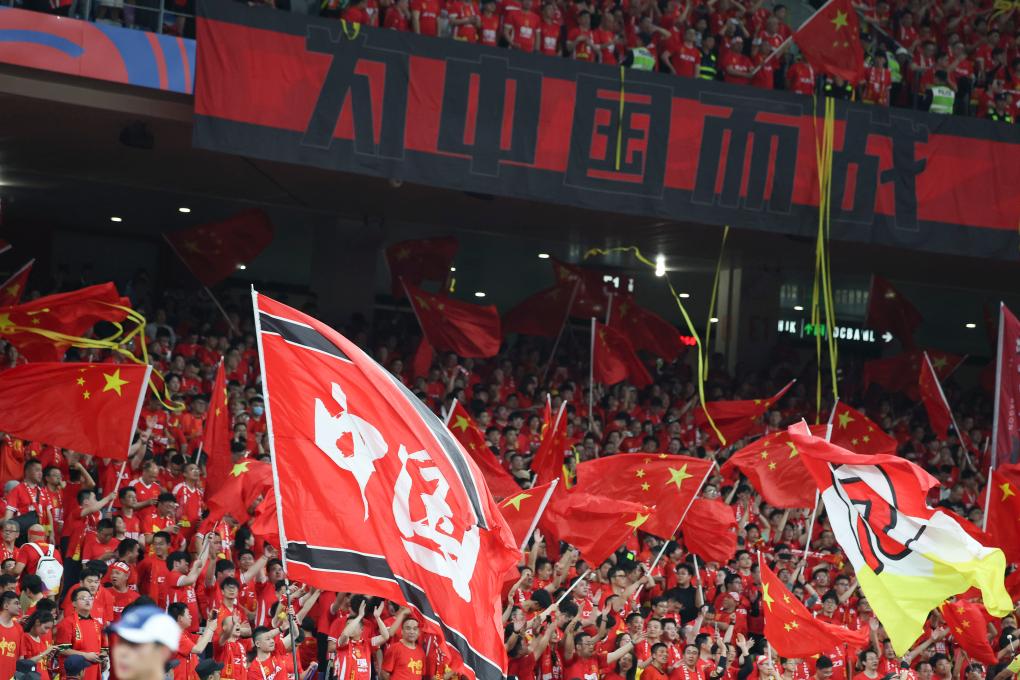 3月25日,中国队球迷在赛前为球队加油助威。新华社记者 张晨 摄