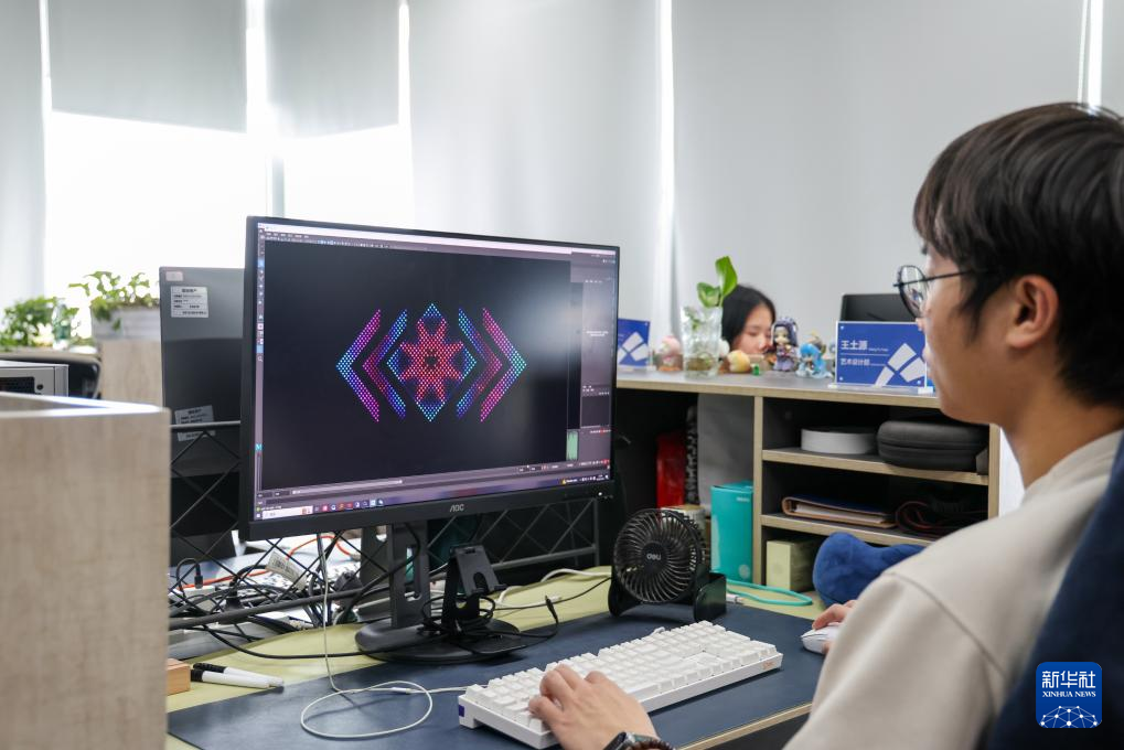 在位于深圳市龙华区的大漠大智控办公室,艺术设计部的员工在设计无人机表演的图案(2024年12月25日摄)。新华社记者 梁旭 摄