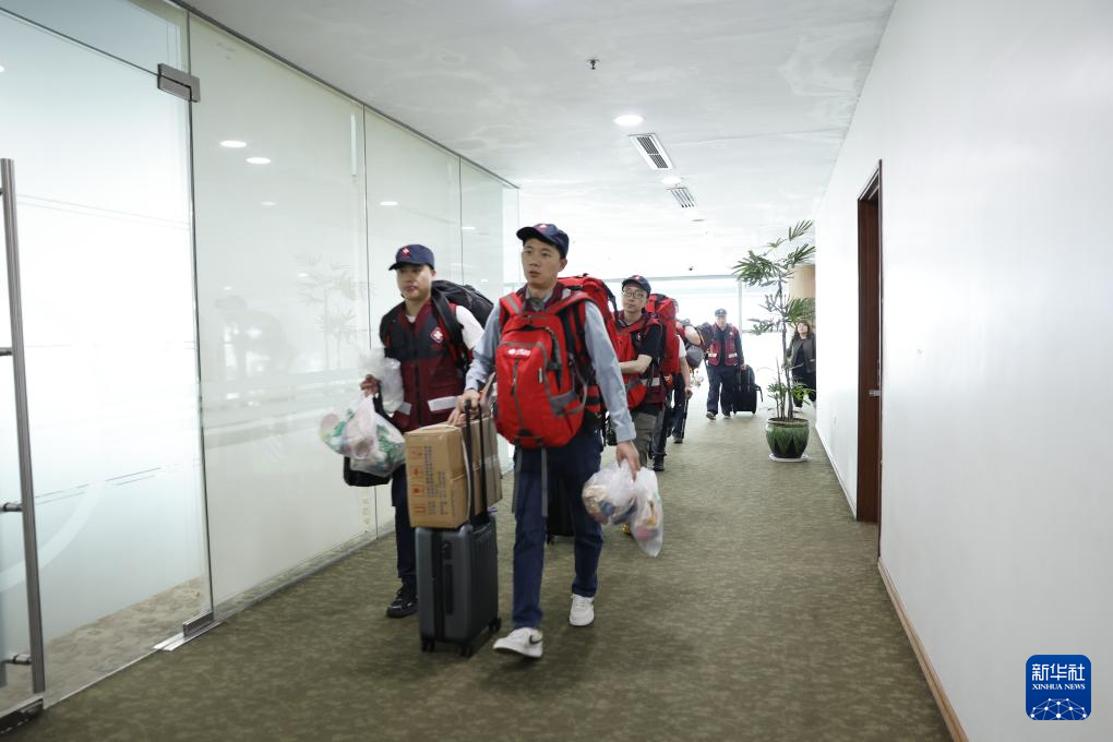 北京时间3月29日6时许,中国云南救援医疗队从昆明长水国际机场乘飞机出发,赶赴缅甸地震灾区。
