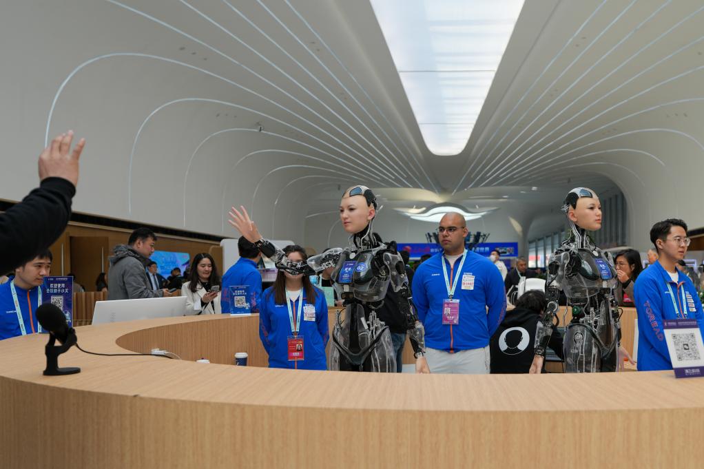 科技办会不仅体现在开幕式上,还体现在论坛的各个角落。“‘小关咖啡’店铺,由机器人担任咖啡师和售卖员,2天为400余位嘉宾提供了个性化饮品服务。”葛志杰介绍,“在入口咨询台放置的‘妮娅’实现了丰富的类人微表情、与语音同步的唇部动作及更真实的交互行为,能够根据声音来源方向自动转向嘉宾,接入智谱大模型,日均生成互动内容2000余条。”