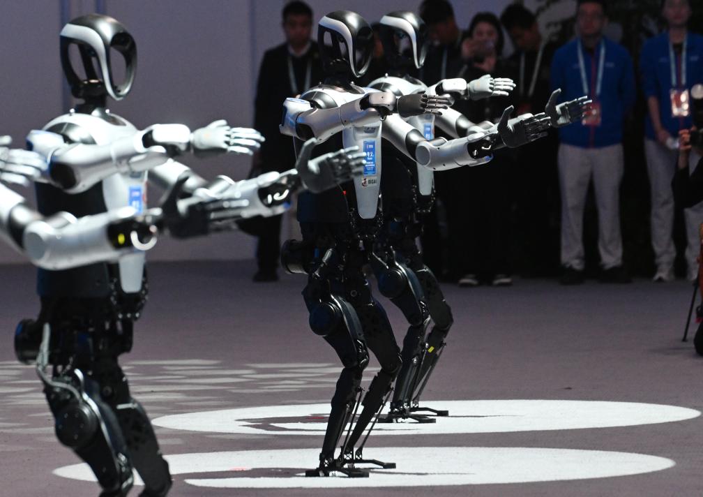 3月27日,人形机器人“夸父”在2025中关村论坛年会开幕式机器人秀环节中表演。新华社记者 张晨霖 摄