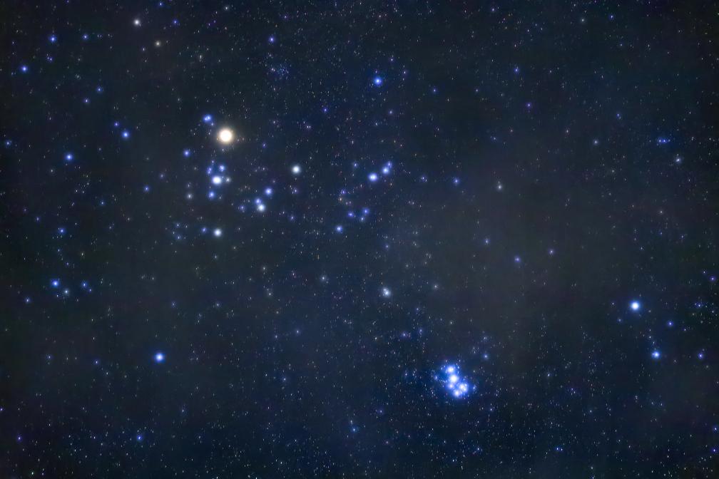 这两颗亮星中,毕宿五相对而言更加容易找到,它是“金牛”的一只眼睛,五车五是“金牛”的一只犄角。不过,作为冬季星空的主角之一,金牛座在四月的夜空中,正在逐渐谢幕。