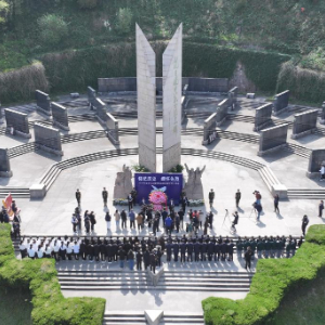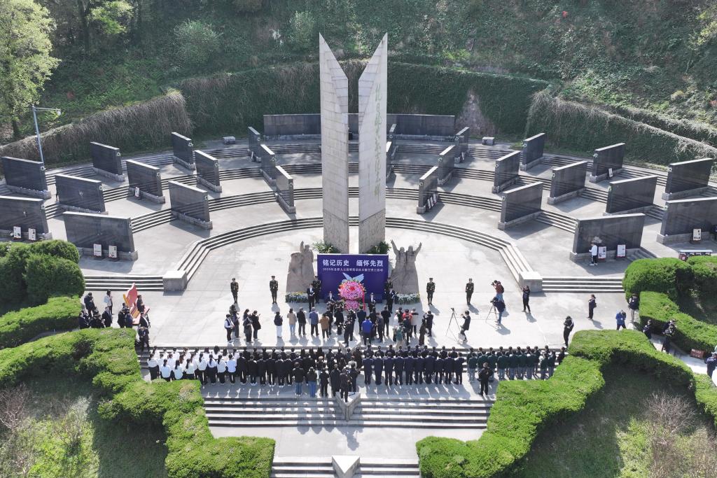 2025年各界人士清明凭吊抗日航空英烈活动在南京航空烈士公墓举行(4月3日摄,无人机照片)。新华社记者 毛俊 摄