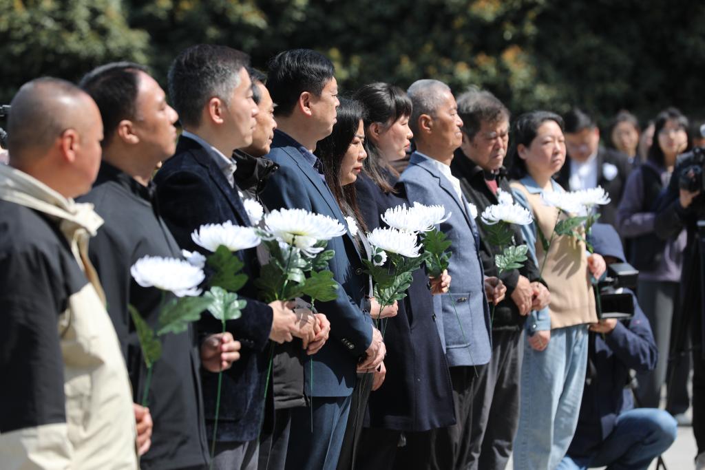 2025年各界人士清明凭吊抗日航空英烈活动在南京航空烈士公墓举行(4月3日摄)。新华社记者 毛俊 摄