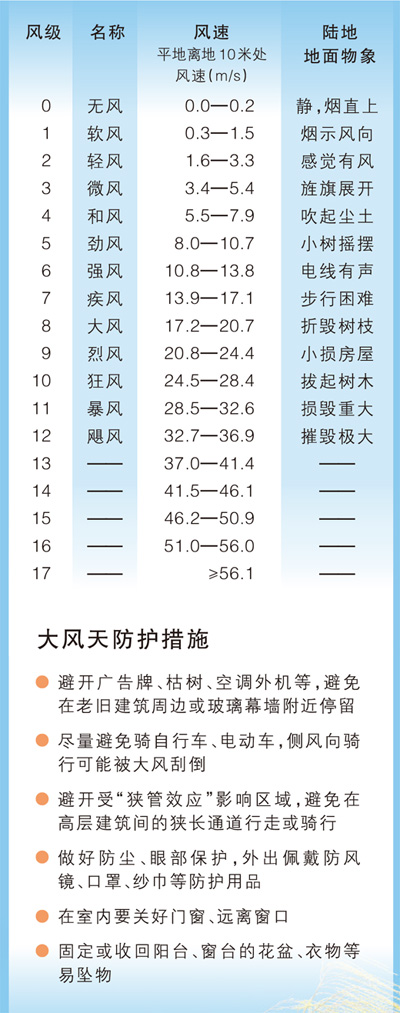 王秀荣建议,大风影响期间,如果在户外,公众要远离高大建筑物、广告牌、临时搭建物、大树等,避免被大风刮落物砸伤。驾车时要避开强风路段,避免强行通过。西北地区有扬沙、浮尘天气,出门时注意佩戴护目镜、口罩,保护眼睛和呼吸道。