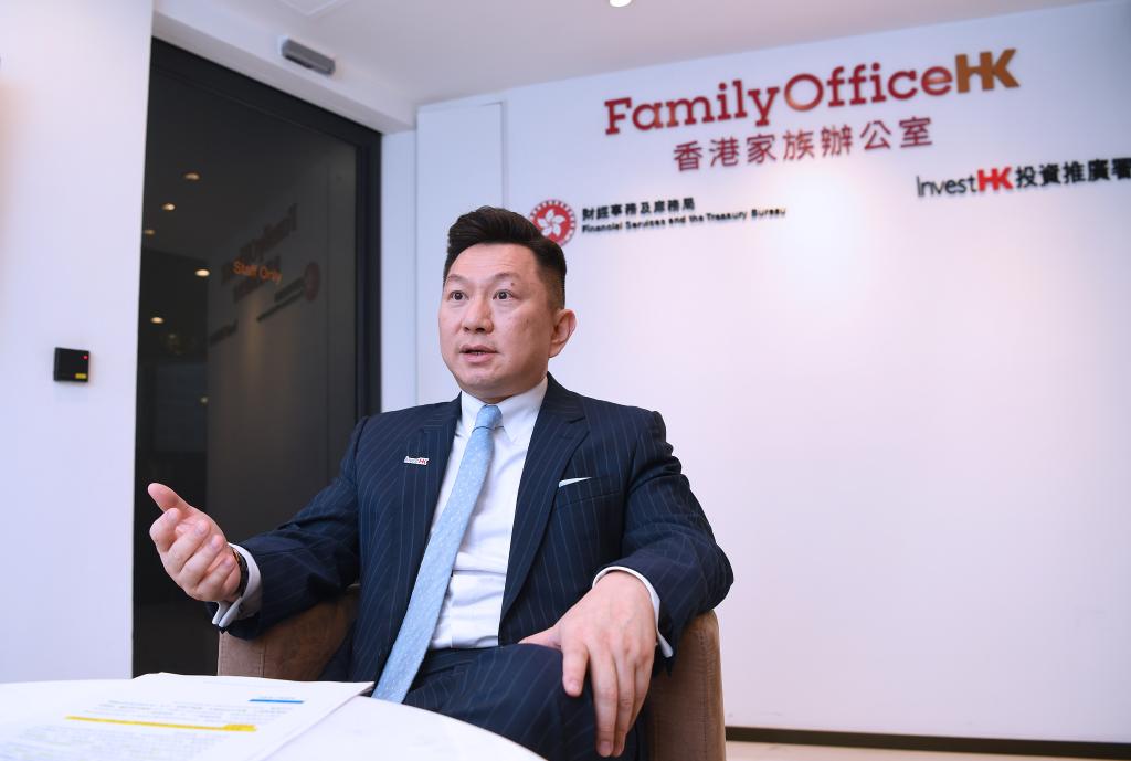 4月10日,香港投资推广署家族办公室环球总裁方展光接受新华社记者专访。新华社记者 陈铎 摄