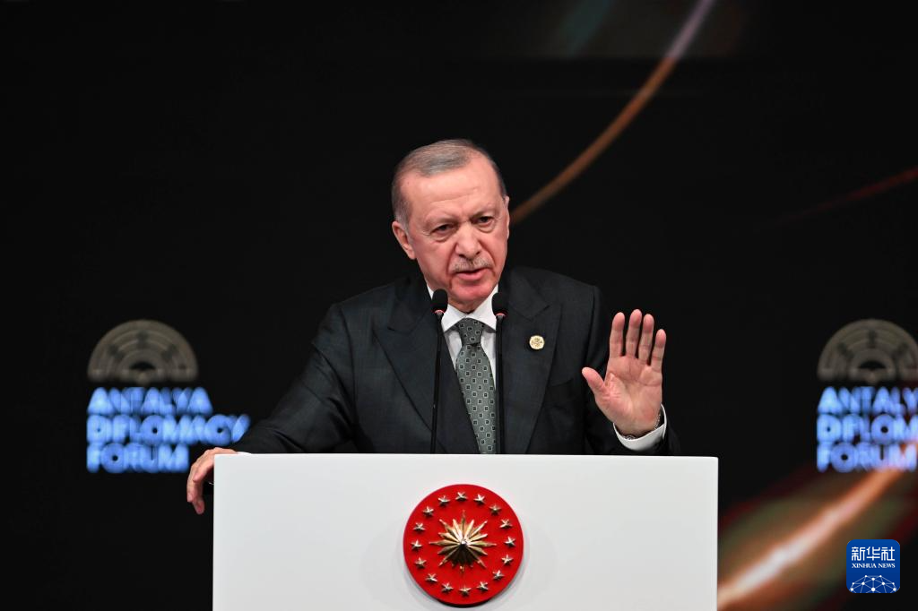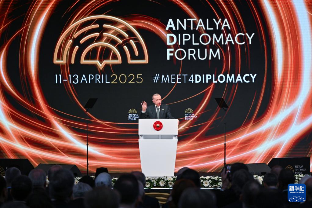 4月11日,土耳其总统埃尔多安在第四届安塔利亚外交论坛开幕式上发表主旨讲话。新华社发(穆斯塔法·卡亚摄)