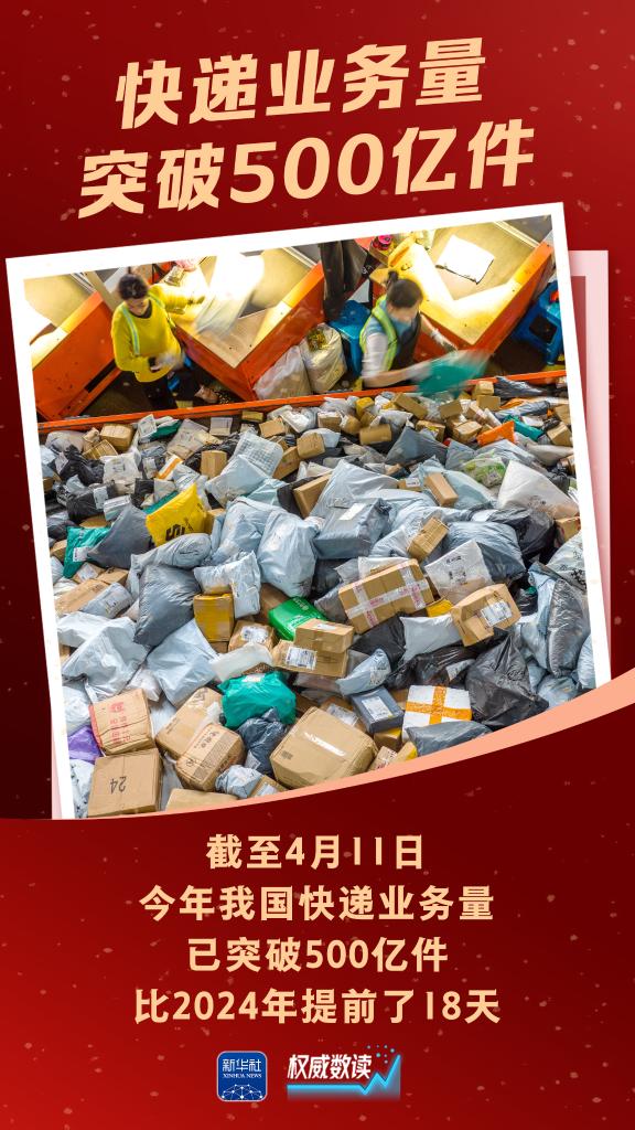 国家邮政局监测数据显示,截至4月11日,今年我国快递业务量已突破500亿件,比2024年提前了18天。2024年,我国快递业务量超过1745亿件,已连续11年稳居世界第一。