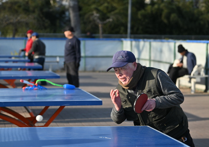↑2024年8月8日,法国巴黎一处公园里,市民们正在打乒乓球。新华社记者 李尕 摄