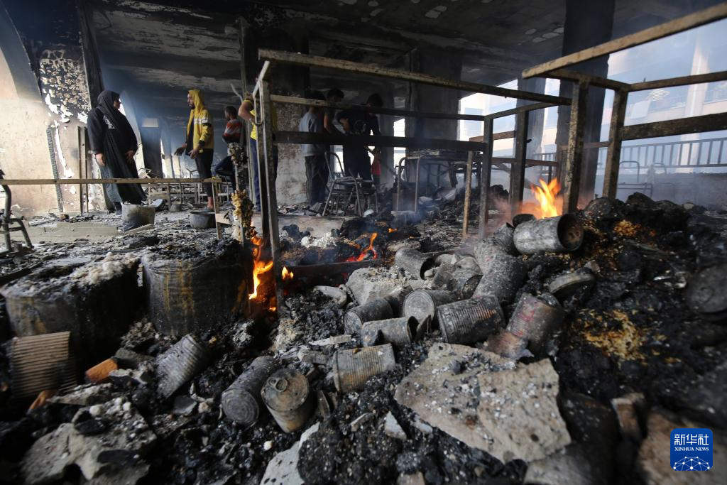 4月23日,在加沙地带北部加沙城,人们查看以军袭击后的学校。新华社发(里泽克·阿卜杜勒贾瓦德摄)