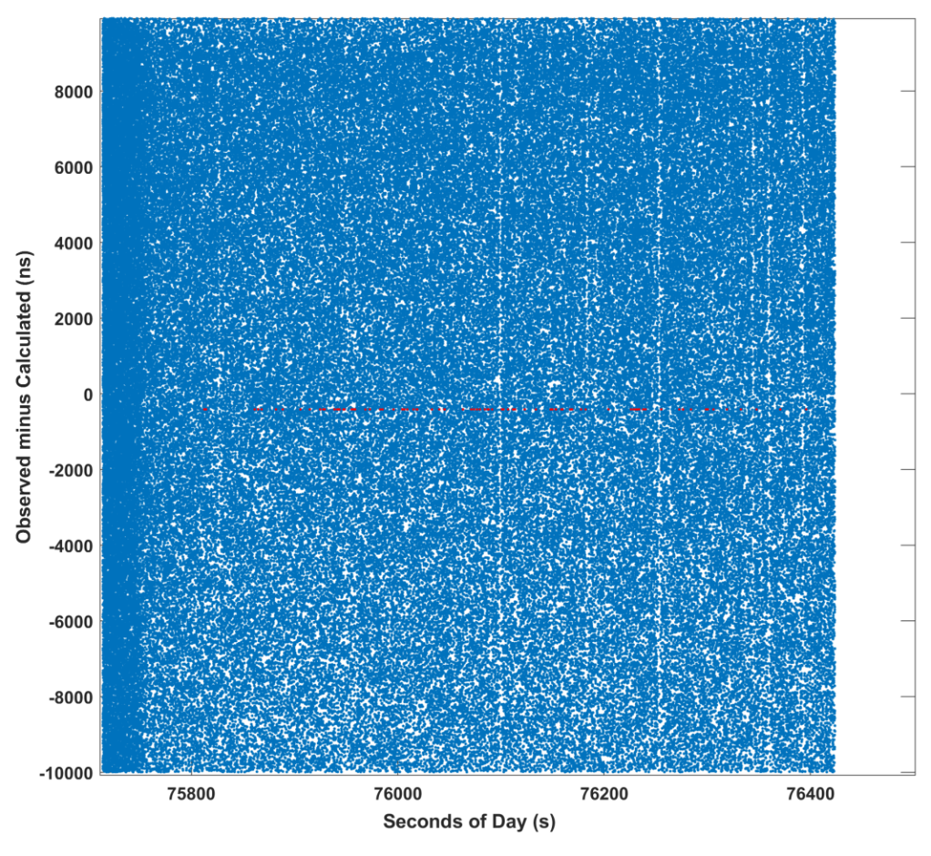 图为DRO-A卫星测距微弱信号识别图。(中国科学院云南天文台供图)
