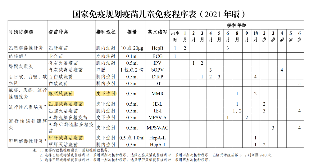 《国家免疫规划疫苗儿童免疫程序表(2021年版)》