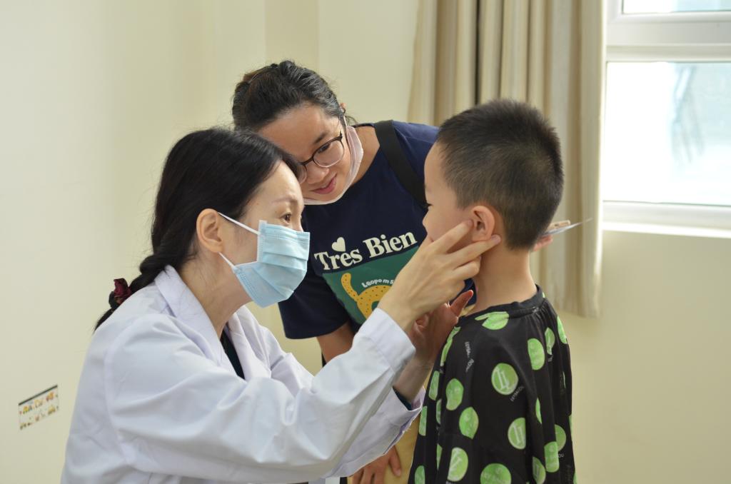 国家儿童医学中心、北京儿童医院保健中心主任医师马扬为儿童看诊。(北京儿童医院供图)