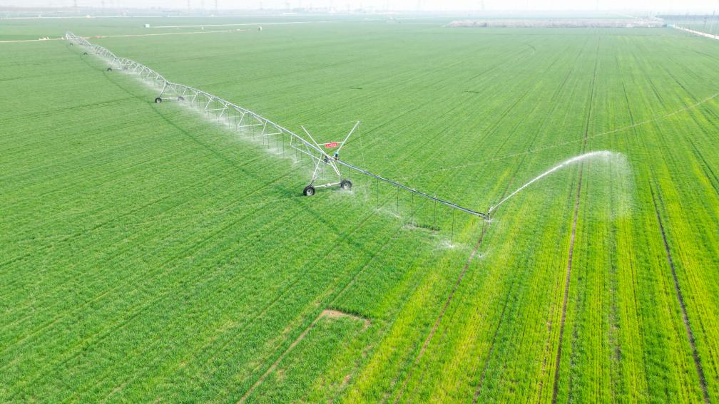在河南省开封市尉氏县张市镇万亩高标准农田示范区,固定式喷灌、伸缩式喷灌、半固定式喷灌、滴灌、微喷灌和绞盘机喷灌等多种先进灌溉技术已投入使用,农户通过手机即可实现千亩农田在“指尖管理”。