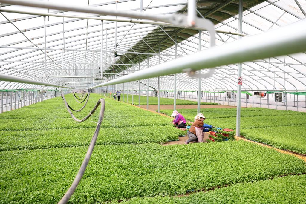 4月1日,工作人员在榆中县金崖镇的甘肃鑫通源农业科技有限公司育苗基地内劳作。新华社记者 陈斌 摄