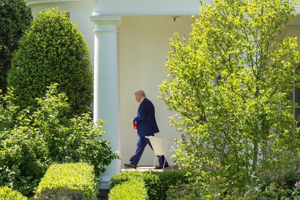 4月29日,在华盛顿白宫,美国总统特朗普走向南草坪准备登机。新华社记者胡友松摄