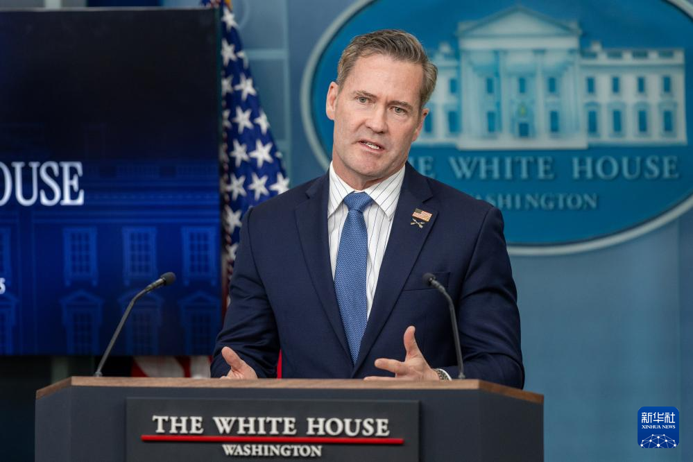 这是美国总统国家安全事务助理迈克尔·华尔兹在华盛顿白宫出席记者会的资料照片(2月20日摄)。新华社记者 胡友松 摄