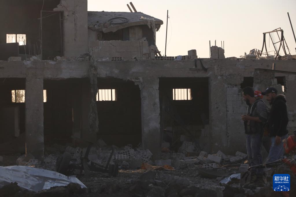 5月2日,在叙利亚南部苏韦达省,人们查看在以色列空袭中损毁的建筑。据叙利亚通讯社2日报道,叙南部苏韦达省卡纳克尔镇当天遭到以色列空袭,导致4名平民死亡。新华社发