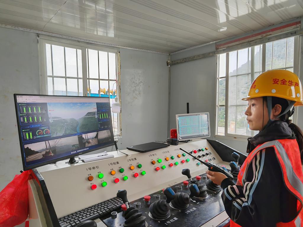 年轻的技术员操控大桥吊装。新华社记者向定杰 摄