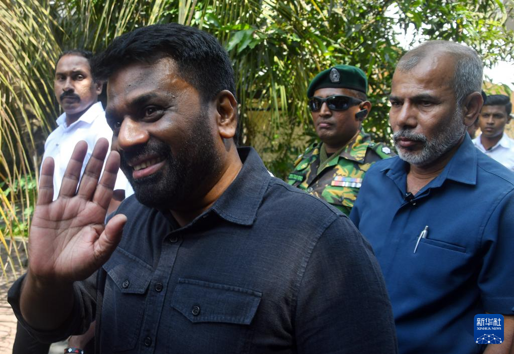 5月6日,斯里兰卡总统迪萨纳亚克(左)在科伦坡一处投票站附近准备投票。新华社发(阿吉特·佩雷拉摄)