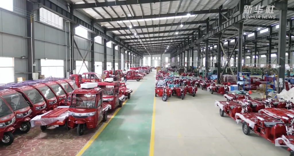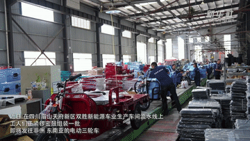 近日,在四川眉山天府新区双胜新能源车业有限责任公司的生产车间流水线上,工人们正紧锣密鼓组装一批即将发往非洲、东南亚的电动三轮车。
