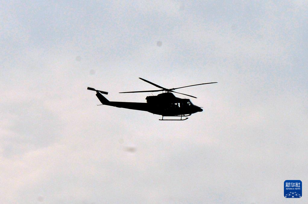 5月9日,斯里兰卡空军直升机在中北省坠落后,附近直升机前往波隆纳鲁瓦附近救援。新华社发(加扬·萨米拉摄)