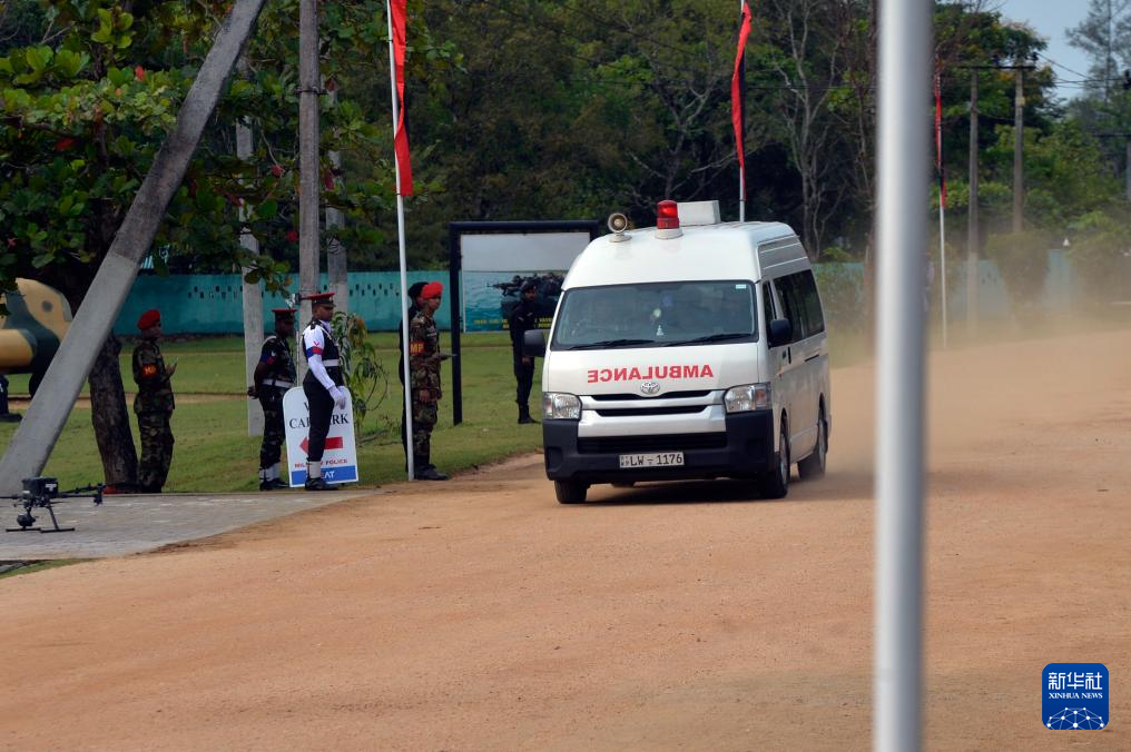 5月9日,斯里兰卡空军直升机在中北省坠落后,伤者被送往波隆纳鲁瓦附近的医院。新华社发(加扬·萨米拉摄)