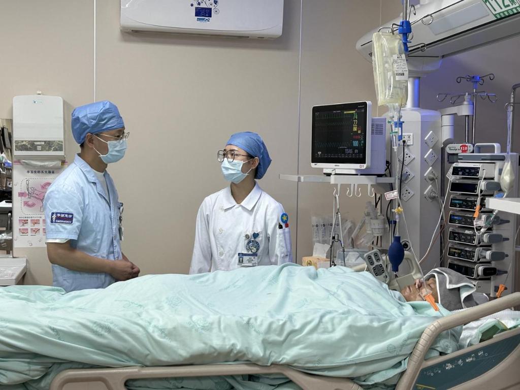 2025年5月9日,四川大学华西医院急诊科护士陈意正在护理病人。新华社记者 赵怡宁 摄